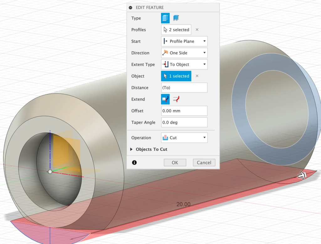 We basically need a 10 mm Hole to make the 20 mm Pin disappear